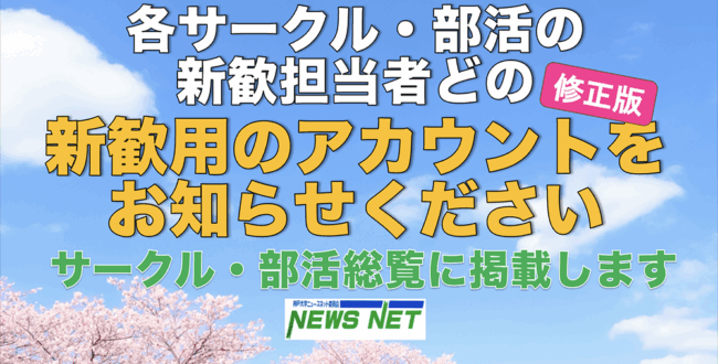 サークル・部活探しの2日間! 新歓祭は3月26日(木)27日(金)
