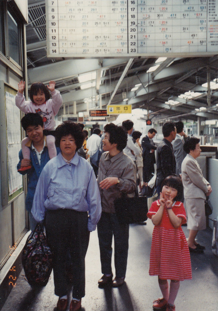 《写真》姪2人、母、真ん中の姉とともに。(1994年4月22日、新神戸駅で)