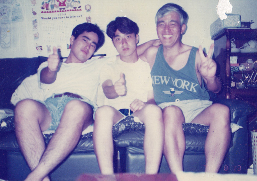 《写真》実家に帰省して、父・博昭さん(右)、弟・潤一郎さん(中央)と。(1994年8月13日撮影)