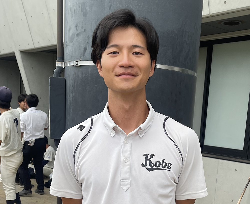 本当に(今季が)終わったのか…、受け止めきれないものがある。悔しい。実力としては優勝(の域)に達していると感じていたが、力を出しきれなかった。それが何だったのか…。ベンチに入らずサポートしてくれた4年生も多く、感謝の気持ちです。後輩たちには1部という舞台で(野球を)やらせてあげることができなくて、申し訳ない。どうか、(今後も)目標を高いところに置いて、神戸大硬式野球部らしい新チームを作ってほしい。