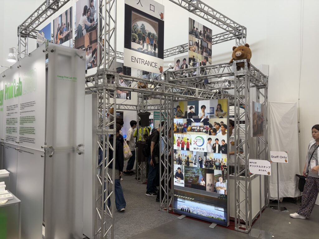 (写真:神戸大のブースの様子。 2025年10月1日撮影、以下すべて万博会場FLV内で撮影)