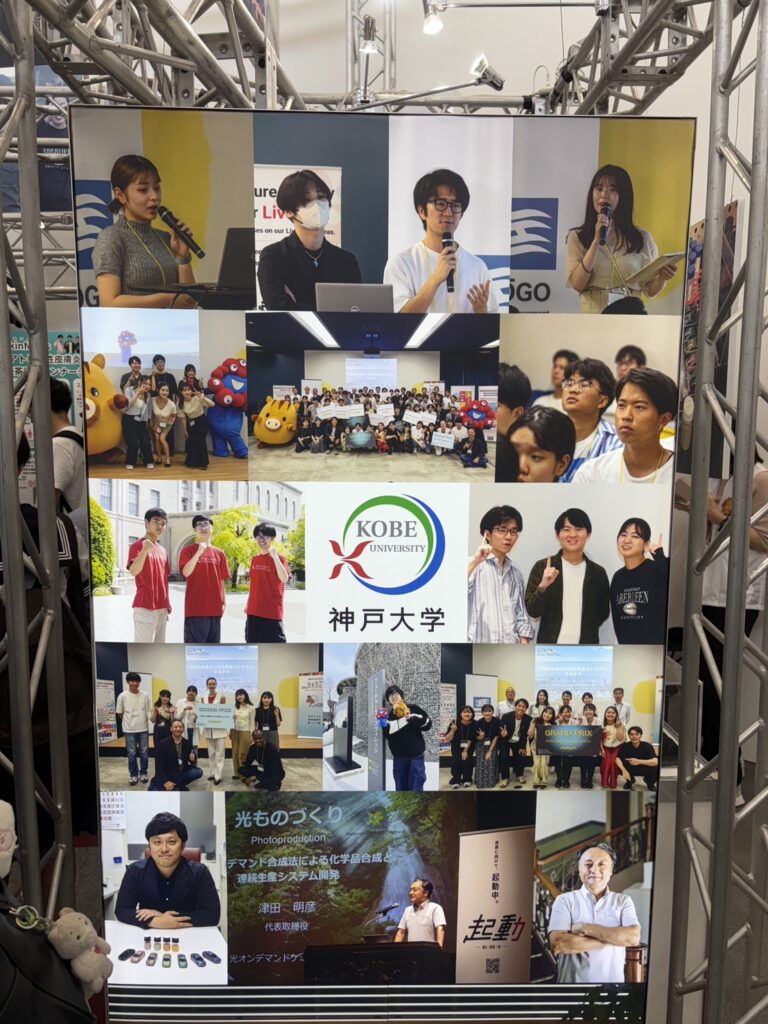 神戸大が、大阪・関西万博フューチャーライフビレッジ(以下、FLV)で10月6日(月)まで開催されているフューチャーライフエクスペリエンスにブース出展している。学内ビジネスコンテストを勝ち抜いた学生チームの事業のほか、神戸大の最先端研究のパネルも展示されている。10月4日(土)には大阪・関西万博FLV内で「SDGs未来ビジネス学生コンテスト2025」が開催される予定だ。<篠原大晴>