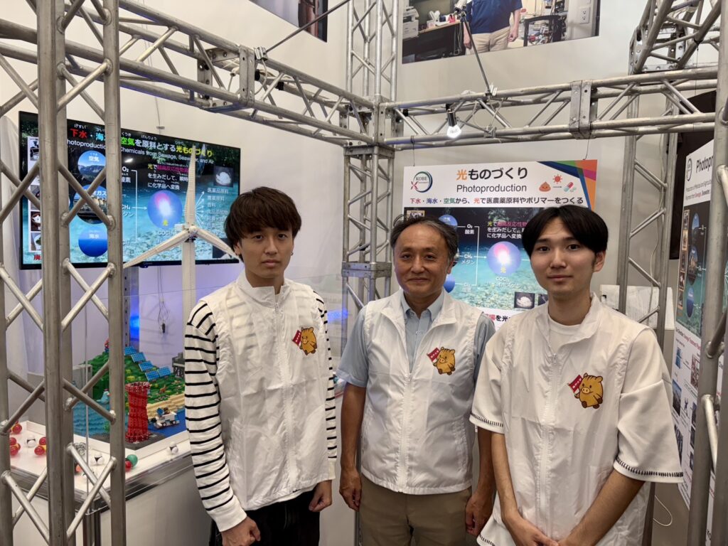 津田研究室の学生で、会場で解説をしていた川口健慎さん(理・4)は「規模を大きくして工業化につなげていきたい」と話し、白川大翔さん(理・4)は 「もっと実用化というところに力を入れて、スケールアップに取り組みたい」と展望を述べた。