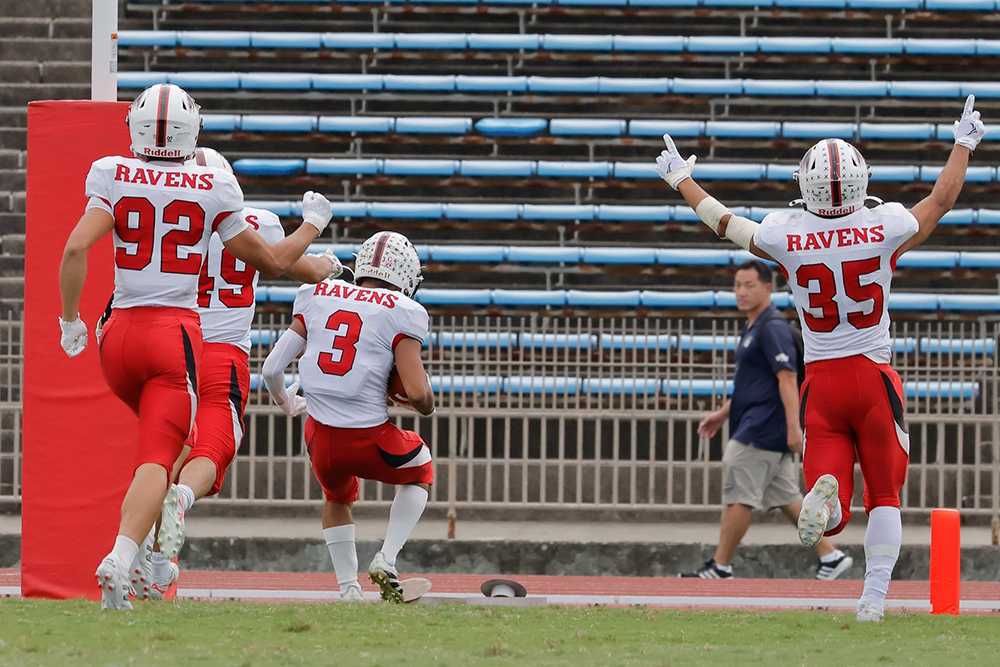 (写真:第3Q、パントブロックからのタッチダウンを決めたDB佐々木翔太#3 久保田一輝 撮影)