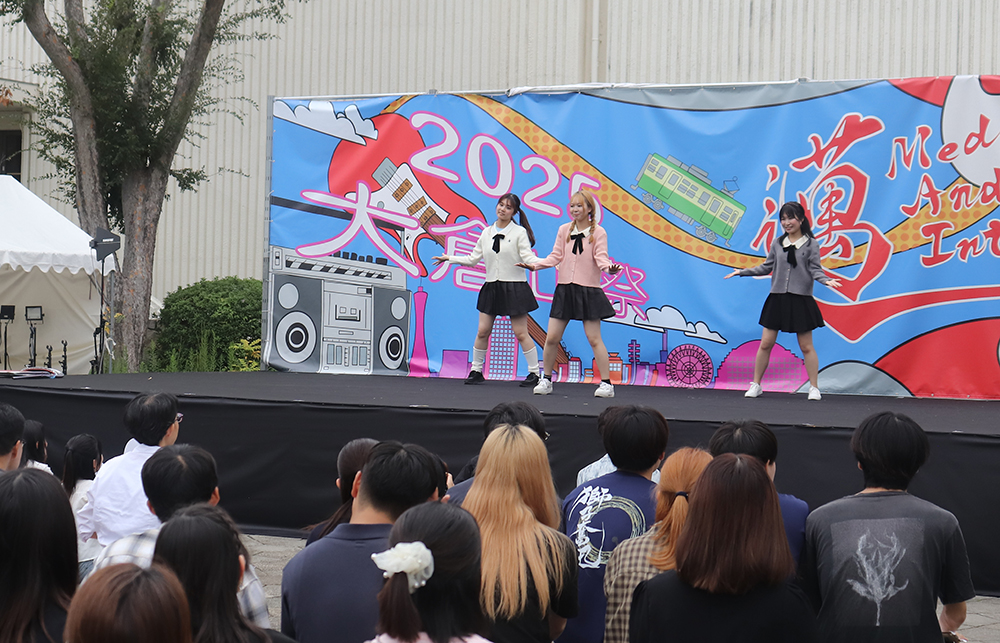 (写真:ステージ企画で踊る学生。2025年10月12日10時半ごろ)
