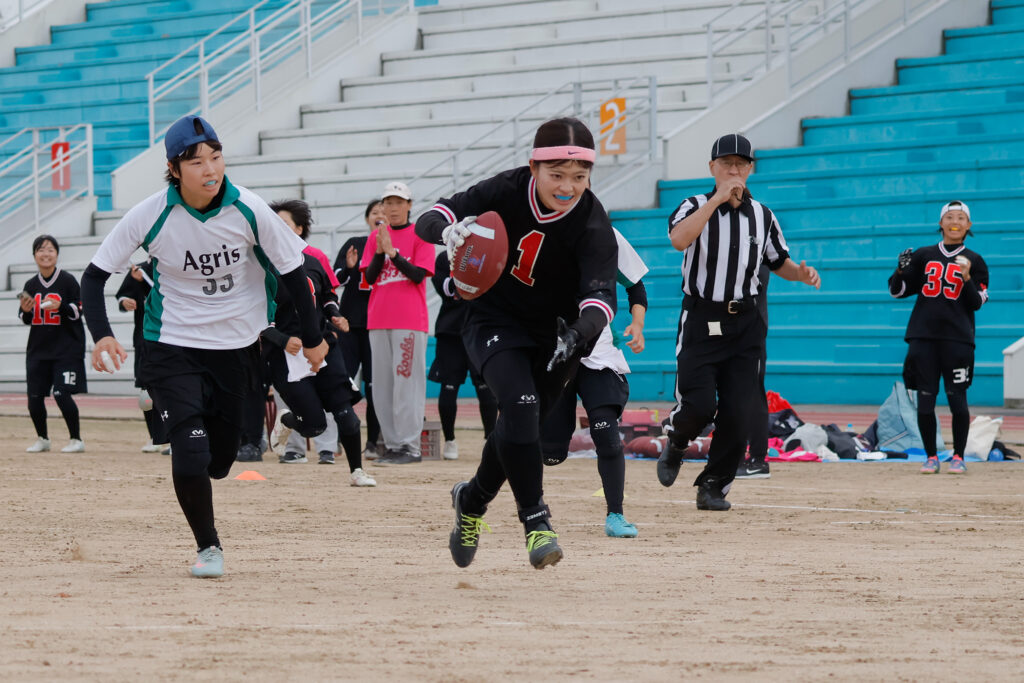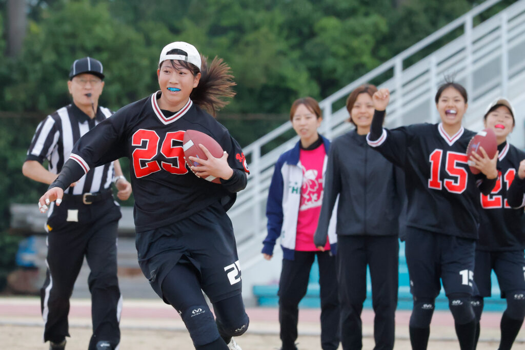 (写真:WR内藤千紗#1のこの試合2本目のタッチダウン)
