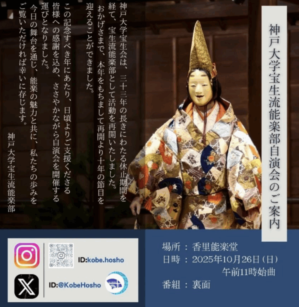 (画像下:宝生流能楽部復活10周年自演会の告知画像 Xより)