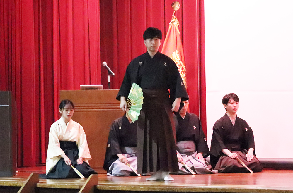 講演のあとに、神戸大学起業部の学生による活動報告や宝生流能楽部が舞と謡を披露、応援団総部による演舞披露が行われた。