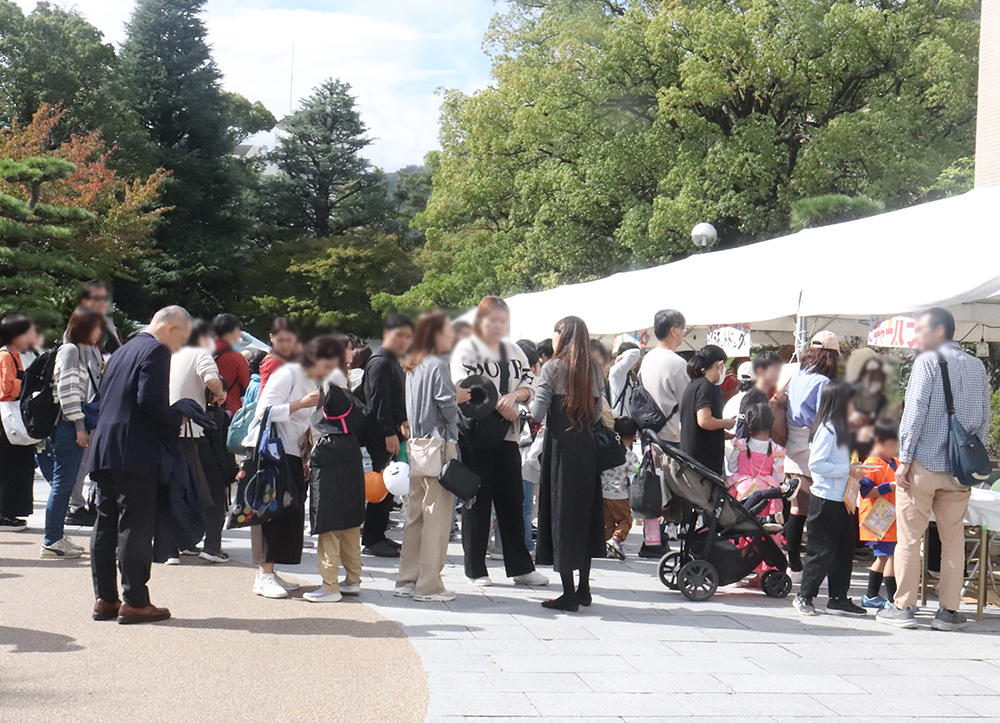 (写真;神戸大学ベルカンが出店した模擬店には家族連れの卒業生らの姿も。2025年10月25日12時5分、六甲台本館前で 画像の一部を加工しています)