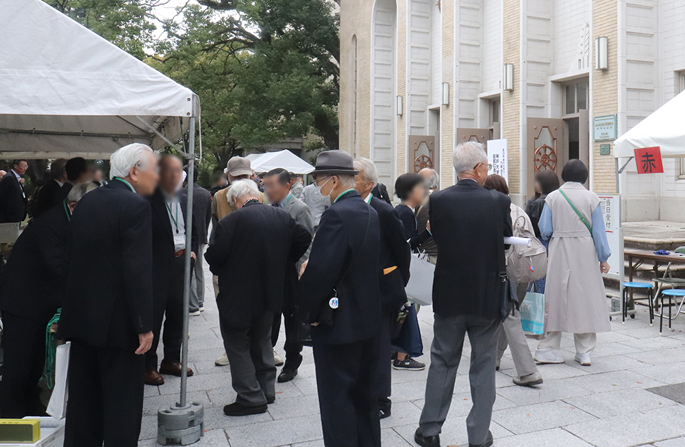 (写真:第19回神戸大学ホームカミングデイの全学式典会場となった出光佐三記念六甲台講堂前には卒業生が集った 2025年10月25日 13時16分撮影 画像の一部を加工しています)