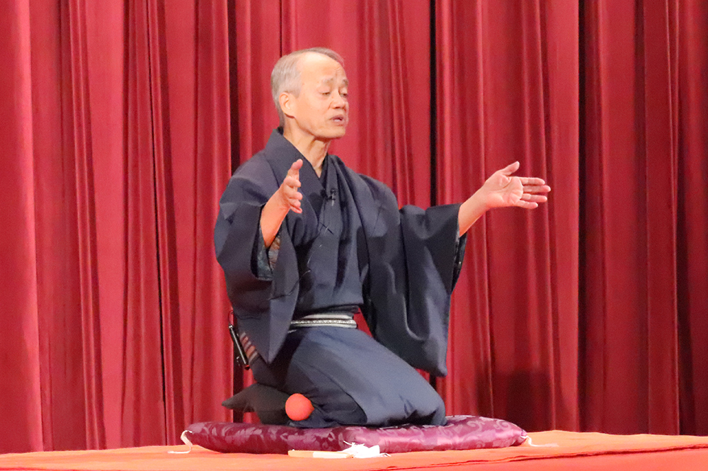 (写真:拡益亭召濘さんの「子ほめ」。2025年10月25日13時37分、六甲台講堂で)