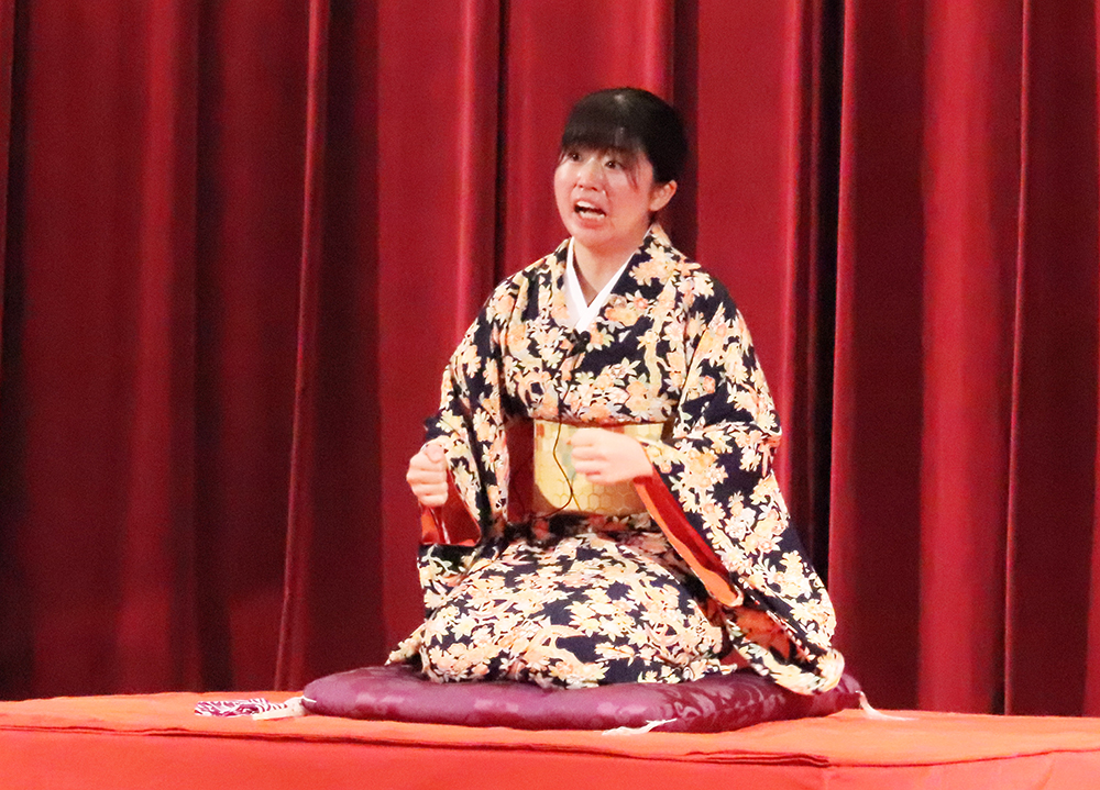 (写真:可愛家のれんさんが演じた「宮戸川」。2025年10月25日14時、六甲台講堂で)