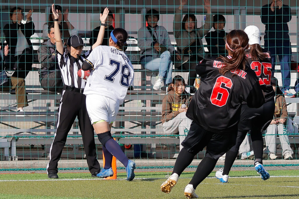 (写真:武庫女大にタッチダウンを許す 2025年11月3日午後、神戸レディースフットボールセンターで)