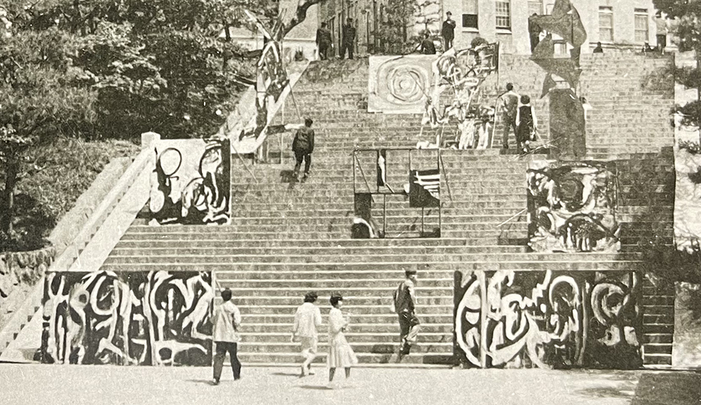 <画像:1963年の卒業アルバムから 六甲台正門階段の装飾>