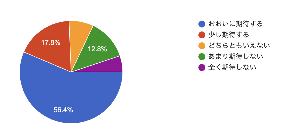 「高市さんの政治手腕に、あなたは期待していますか?」の設問には、「大いに期待する」が56%、少し期待するが18%で、期待する人が全体の7割を超えた。一方、「全く期待しない」が5%、「あまり期待しない」が13%で、2割近くが期待しないと答えた。「どちらともいえない」が8%だった。
