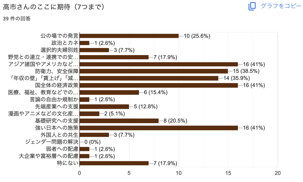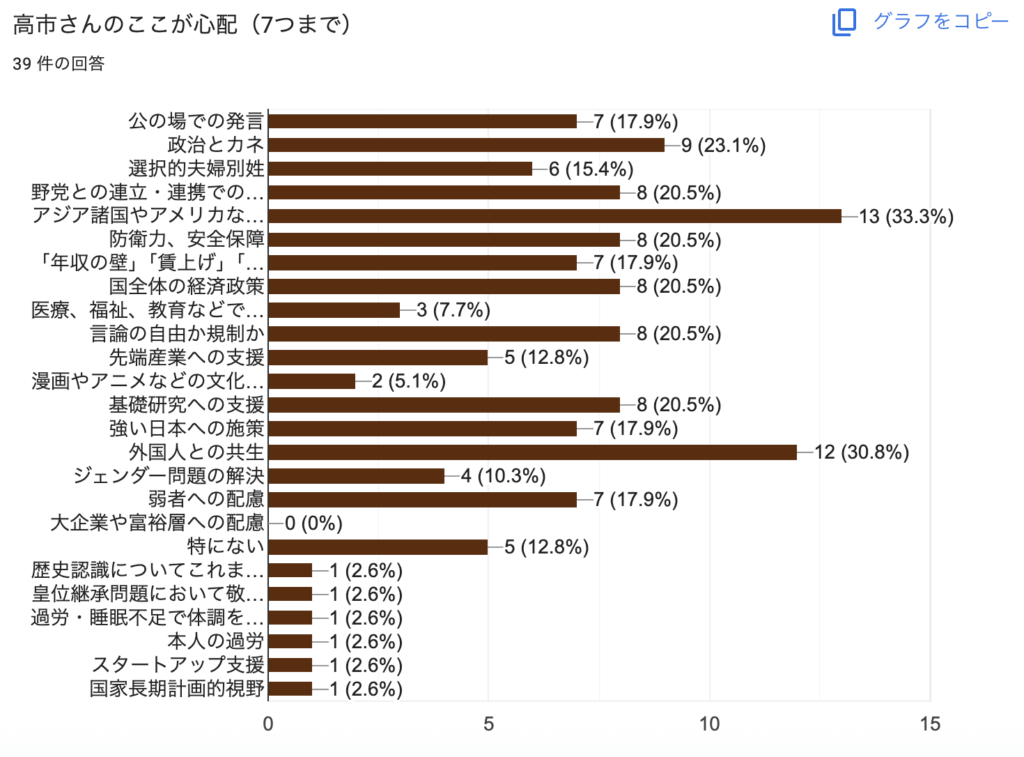 (グラフ:高市さんのここが心配 7つまで回答。さらに自由に回答を付加)