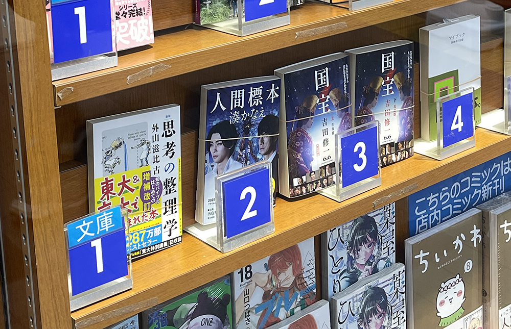 阪急六甲駅2階のブックファースト六甲店でも平積み。さらに、ウィンドウには、文庫本ランキング(11月17日〜23日販売)で1位として陳列されている。