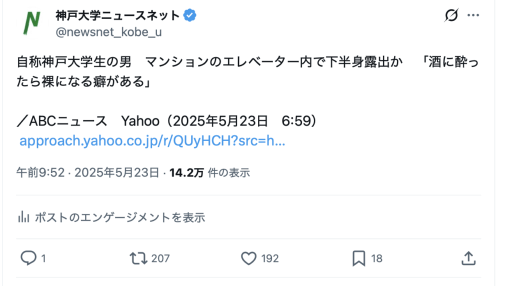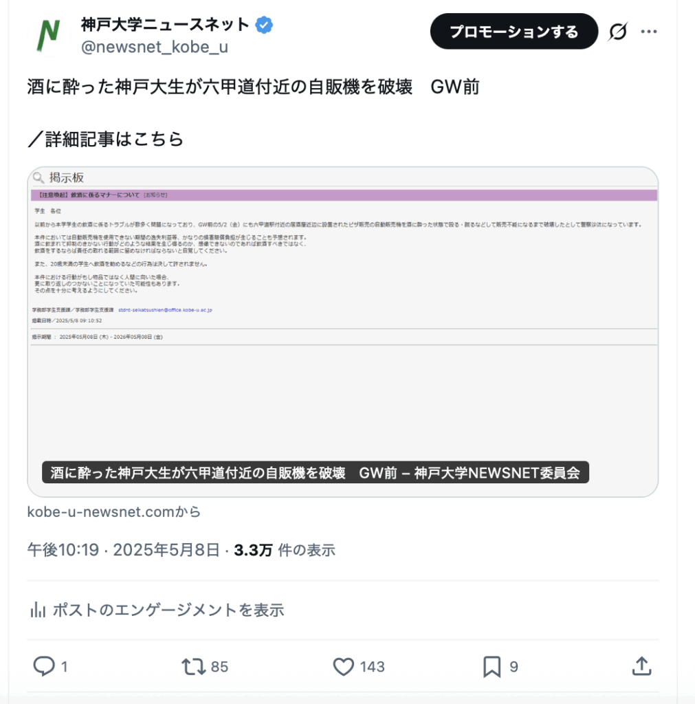 ・ポスト= https://x.com/newsnet_kobe_u/status/1925716482232643743