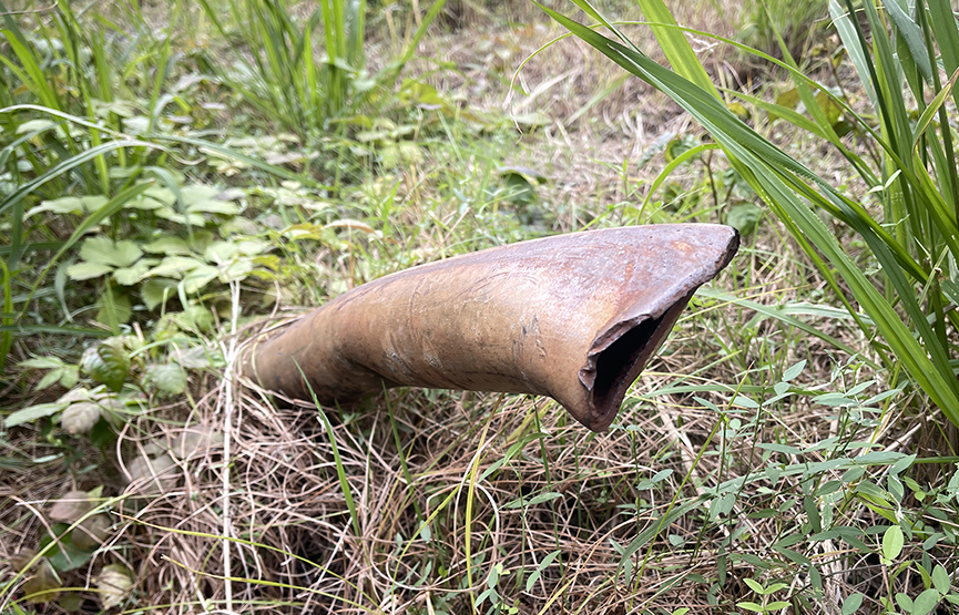 (写真:地中から突き出た金属製のパイプ 2025年11月24日)