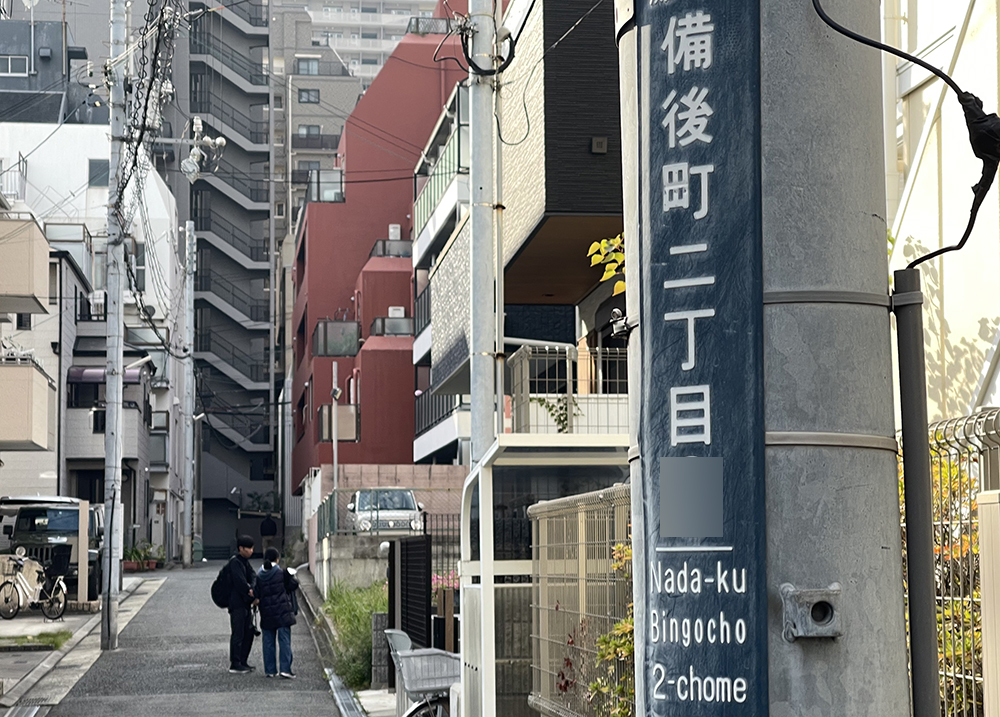 灘区備後町2丁目。岩田文化住宅は木造二階建てで、15戸があった。ここで、磯部純子さん(教育・4年)、歯朶原孝さん(理・3年)、梶達雄さん(理・2年)、細井里美さん(農・2年)が被災し、亡くなった。全員が1階の住民だった。