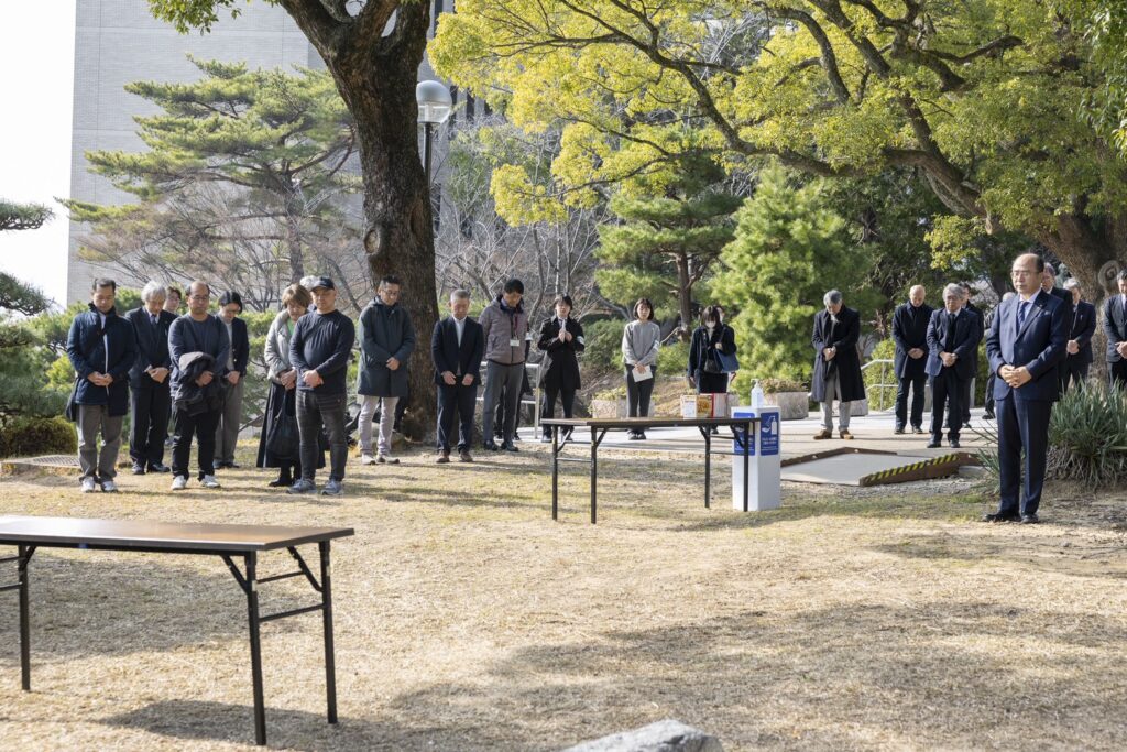 1月16日、神戸大六甲台第1キャンパスの慰霊碑で震災慰霊献花式が行われた。阪神・淡路大震災から31年を迎えるのを前に、遺族や犠牲者の友人など約150名(大学発表)が参列。参列者は黙祷と献花を行い、亡くなった神戸大の学生や職員を偲んだ。<取材班>