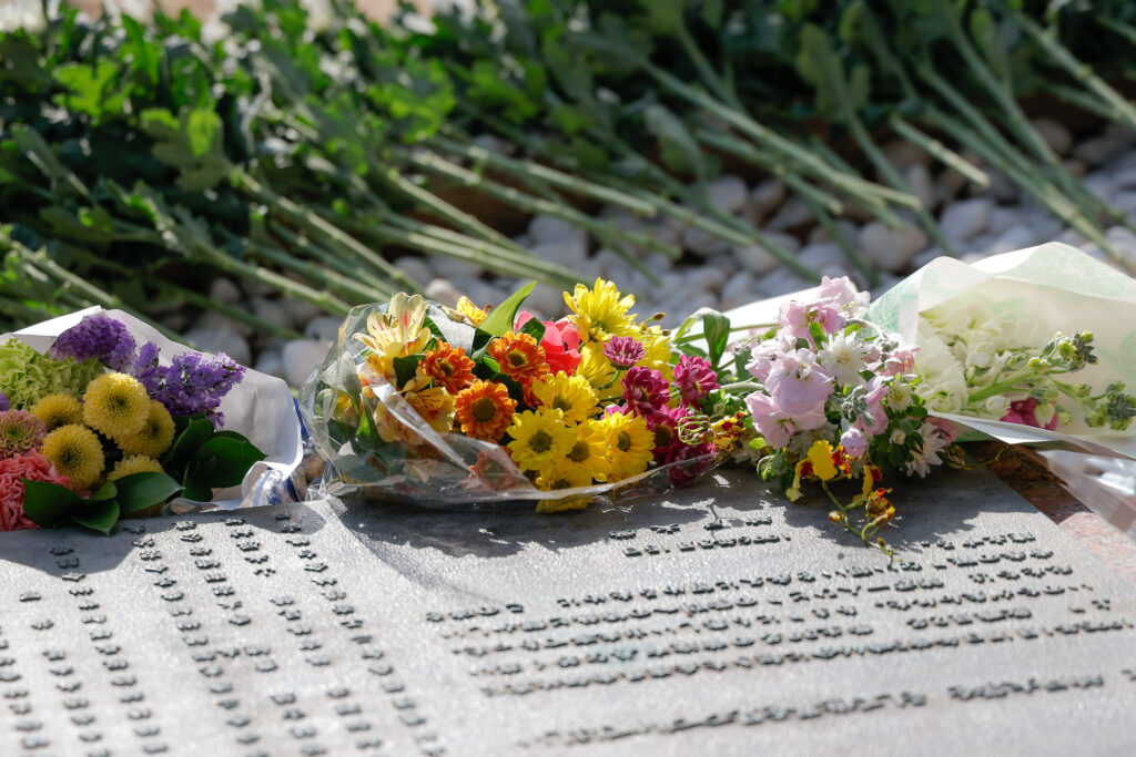 (写真:花が供えられた慰霊碑。2026年1月16日13時14分)