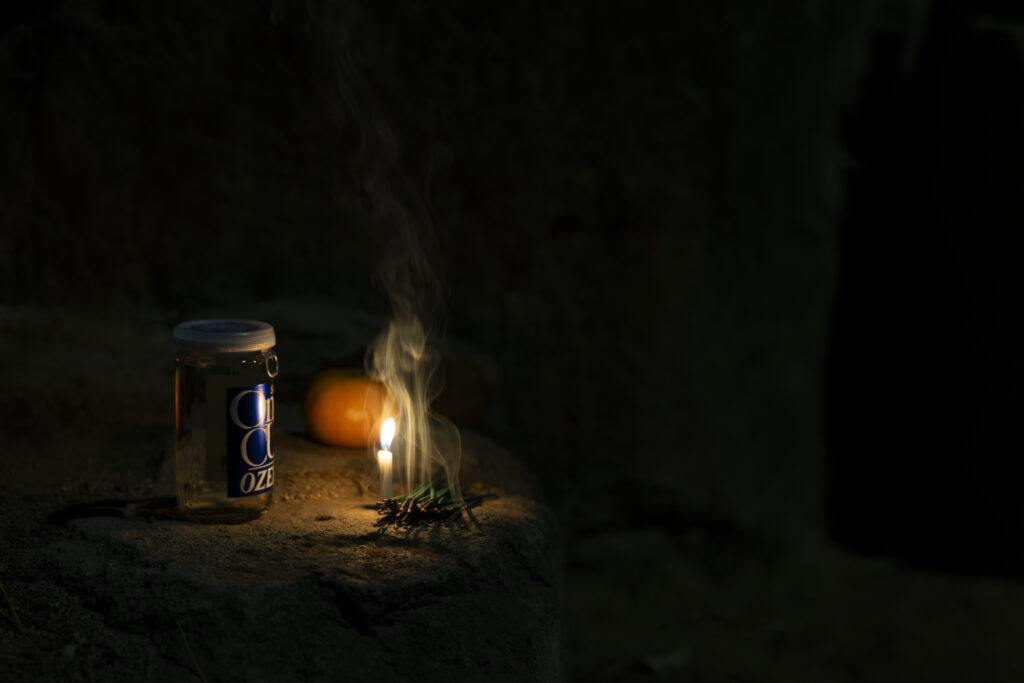 (写真:供えられた線香や酒 2026年1月17日5時41分撮影)