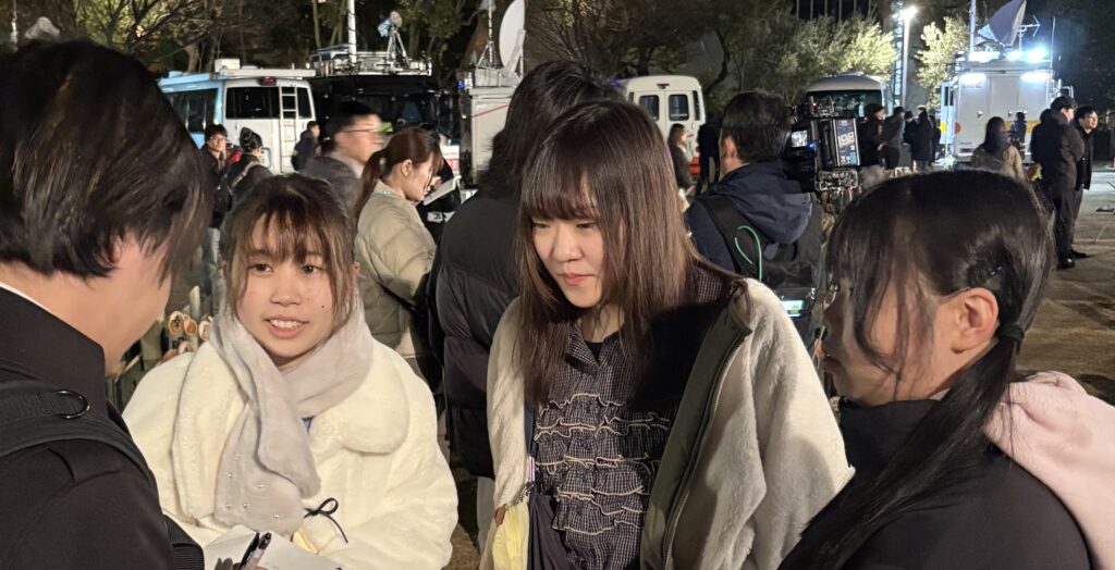 (写真:取材に応じる岩村さんら。2026年1月17日4時53分、東遊園地で撮影)