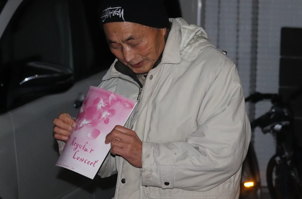 (写真:志乃さんが作った演奏会パンフレットを見せる政志さん)