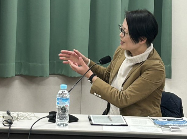 (写真:会場にマイクを向ける住田さん 神戸大学ウェブサイトから許可を得て転載)