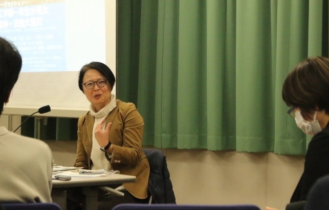 学生3)国際人間科学部の1回生です。やっぱり普段ニュースとかでこの時期になると、こういう阪神・淡路大震災だとか、大きな震災というのは、毎回毎回報道されると思うんですが、やっぱりそういうニュースでは語られないようなことを聞くことができました。