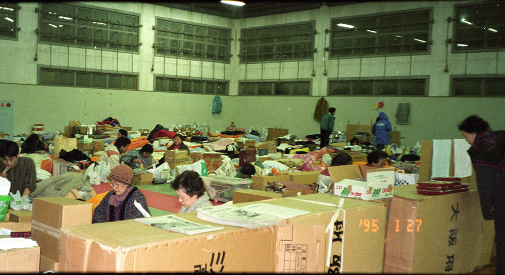 ききて)これが国際文化学部、現在の鶴甲第一キャンパスの武道場ですけれども、あそこの体育館も武道場も避難所になりまして、ダンボール箱がずらっと並んで仕切ってありまして、皆さんそこに布団や毛布を敷いて避難されているという状況です。ですからこの神戸大学も避難所にもなり、そして学生も犠牲者が出るという中です。今、近藤先生は教員という立場ですけれども、自分の教え子がっていうのはちょっと想像できないですね。
