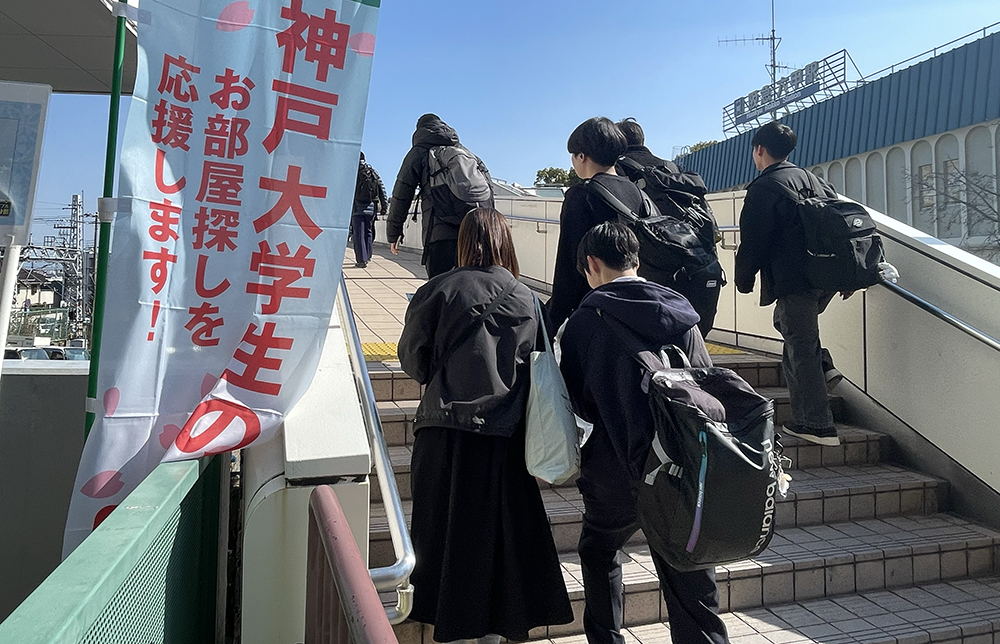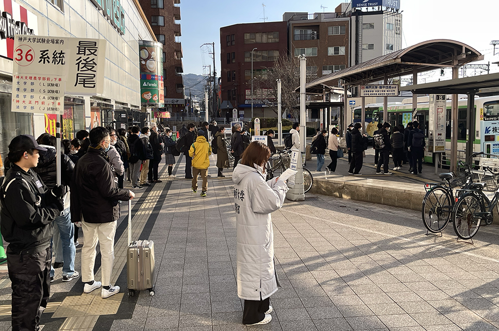 受験者数は、5600人余が受験した前期試験の3分の1と少ないため、朝の阪急六甲駅やJR六甲道駅で大きな混雑は見られなかった。